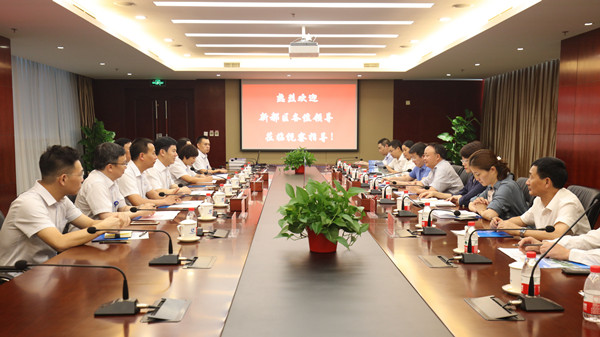 9月4日,成都市新都区委书记许兴国,副区长刘清,成都香城投资集团有限公司董事长张启明一行十人莅临万搏网页版登录入口视察交流,集团公司党委书记、董事长陈先瑞,总经理王建红热情迎接。