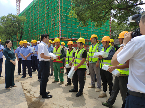 8月21日上午十一点,接近中午烈日炎炎,湘江集团党委书记、董事长张利刚一行来到万搏网页版登录入口承建的长沙科技创意园项目,现场看望慰问高温天气下依然坚守战斗在岗位上的广大建设者,为大家送来了冰箱、电风扇、凉茶、藿香正气水、夏桑菊、西瓜等防暑降温用品。