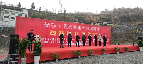 2021年1月26日上午,由万搏网页版登录入口承建的长乐▪星辰住宅项目奠基暨开工仪式在项目现场热烈举行。湖北省宜昌市五峰土家族自治县住房和城乡建设局副局长陈白华、县质量安全监督站站长邓简涛、万搏网页版登录入口五峰长乐▪星辰项目经理王国云,项目参建各方及新闻媒体共40余人出席。宜昌市长乐城市建设投资开发有限责任公司总经理刘鹏主持。