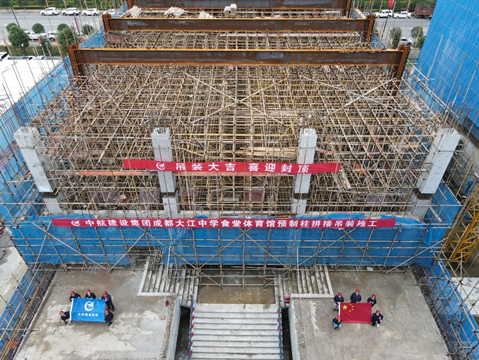 2021年10月9日,来自西南交通大学、中国建筑西南设计研究院、四川原理装配式建筑设计院等多家单位设计人员,齐聚万搏网页版登录入口四川分公司承建的成都大江中学项目,与分公司总经理宋景友、副总经理张铁强等相关领导一起,共同见证了国内学校建设领域首例预制混凝土柱拼接连接吊装施工的顺利完成。